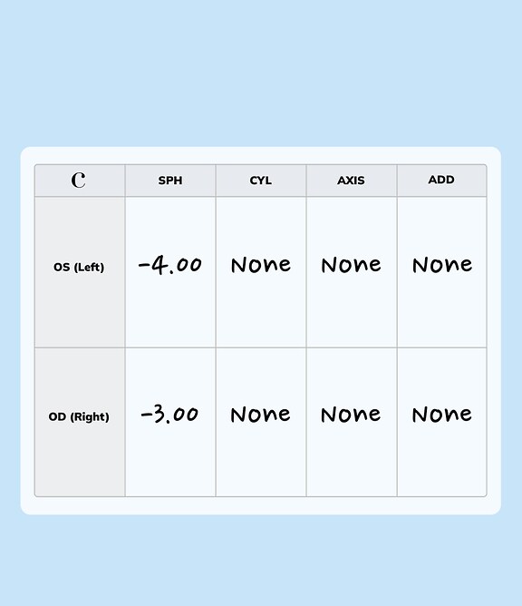 You’ll see numbers under the CYL and AXIS columns of your prescription.