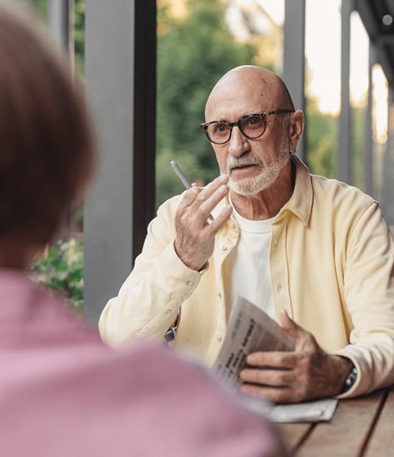 Glasses with progressive lenses help correct presbyopia, which typically begins to affect people in their 40s and makes it hard to see close objects. Progressives cover multiple vision needs within one lens.